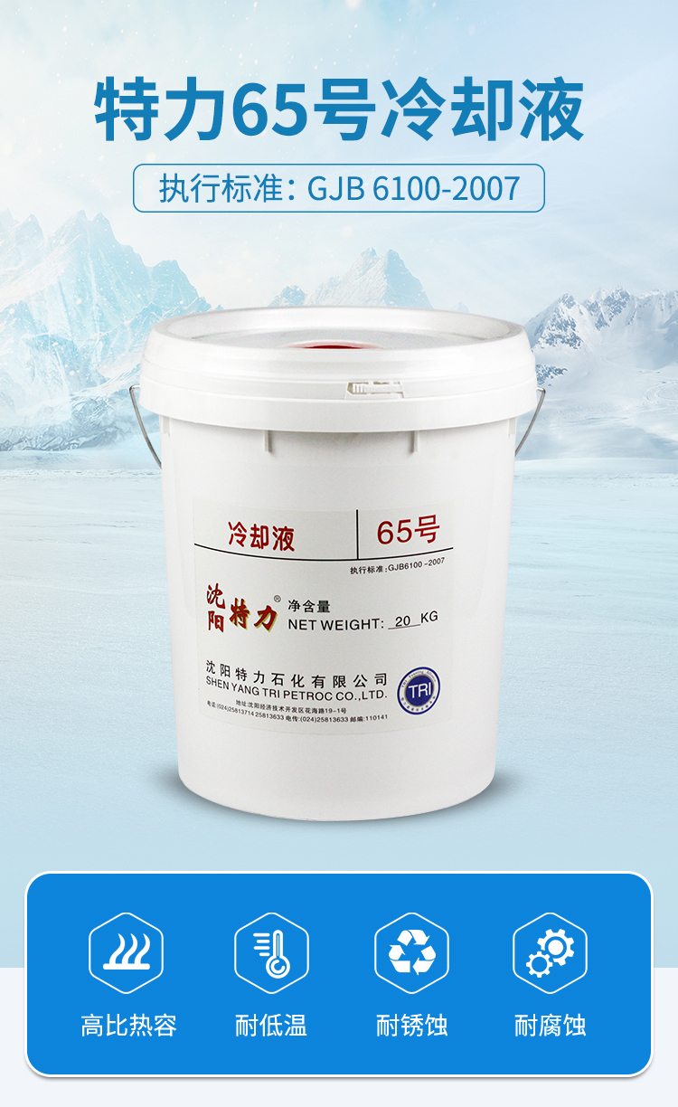 該產品符合國軍標GJB6100-2007執行標準。除了65號之外,特力還提供冷卻液的標號、包裝定制功能:包括40號、45號、50號、60號以及4kg、20kg以及客戶所需包裝服務,歡迎咨詢