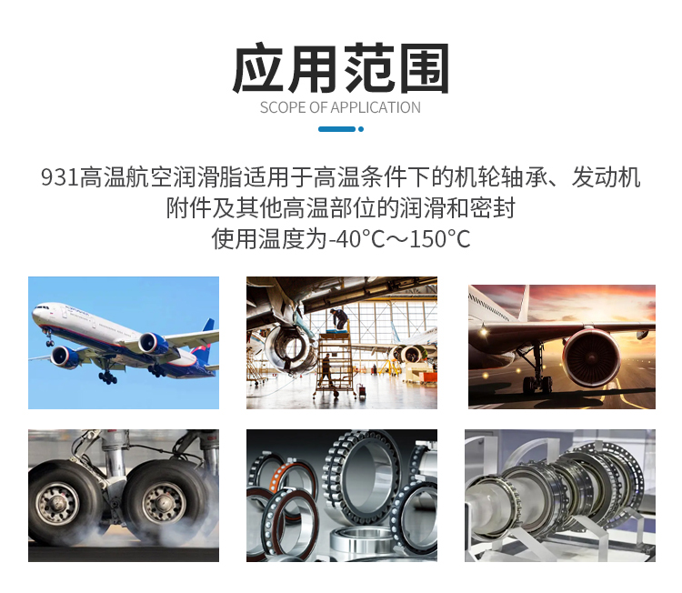 931高溫航空潤滑脂適用于高溫條件下的機輪軸承、發動機附件及其他高溫部位的潤滑和密封,使用溫度為-40℃~150℃。