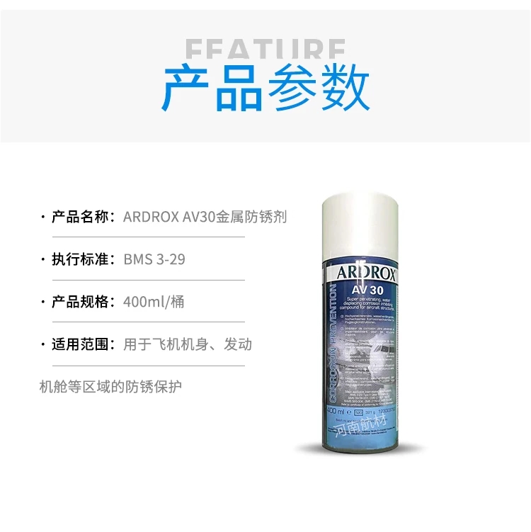 Chemetall ARDROX AV30金屬防銹劑是一種用于航空航天領域的金屬防銹保護劑,ARDROX AV 30由德國化學品制造商Chemetall生產。它是一種滲透性防銹保護劑,形成無粘性蠟質保護膜。
