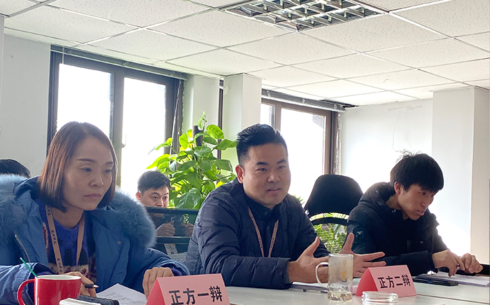 此次辯論賽分為四組,兩兩對(duì)決,勝利的隊(duì)伍參與決賽的競(jìng)爭(zhēng)。初賽的辯論題目分別是:“正方:法大于情,反方:情大于法”以及“正方:知足長(zhǎng)樂,反方:不知足長(zhǎng)樂”于2023年1月7日開始,決賽的辯論題目是“正方:不以成敗論英雄、反方:英雄自以成敗論”于2023年1月11日舉辦。由宋總擔(dān)任裁判員、陳經(jīng)理和文經(jīng)理分別擔(dān)任觀察員,公司所有同事觀看本次辯論大賽。